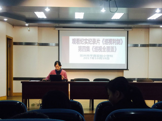 2017年10月18日下午,苏州市平直实验小学校组织全体教师观看了大型纪实纪录片《巡视利剑》第四集《巡视全覆盖》。