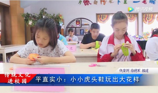 2017年6月10日,苏州教育电视台了解到我校的这项传统艺术课程,专程来校参观并采访了参与制作虎头鞋的师生。