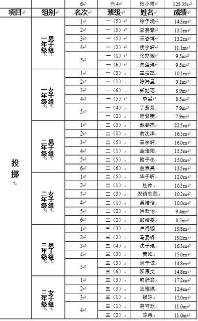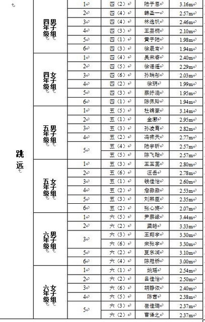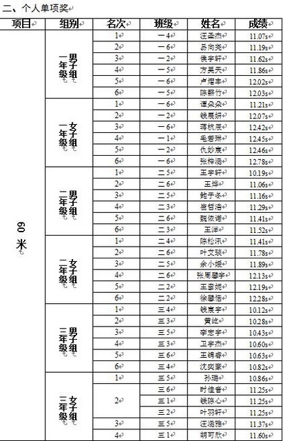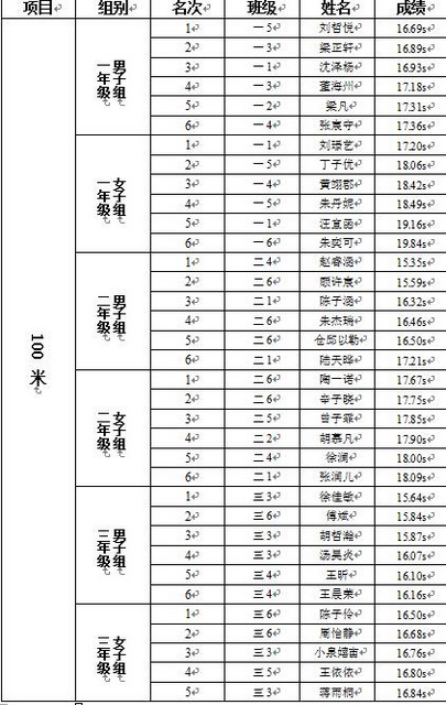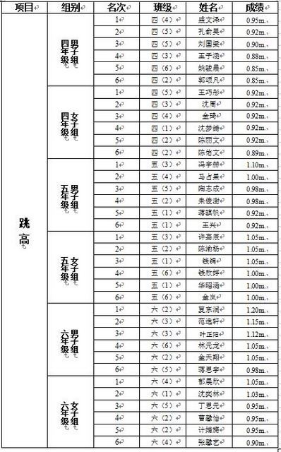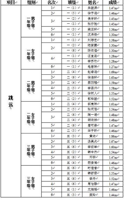 2017年6月14日上午,全体师生齐聚学校操场,举行田径运动会颁奖仪式,见证分享胜利果实的一刻。本次运动会共设了团体和个人项目,36个班级参与了队列表演和广播操比赛的团体项目,参与率100%。学生积极参加比赛,每个年级评出一、二、三等奖(团体)各一名;单项项目有60米、100米、200米、400米、4×100米、跳远、跳高、垒球,每个项目每个班级男女各6名参与比赛,评出年级男女前六名,获奖率16.7%。