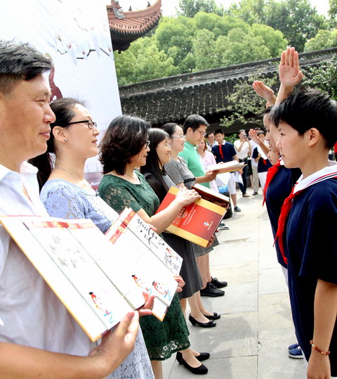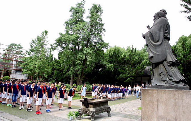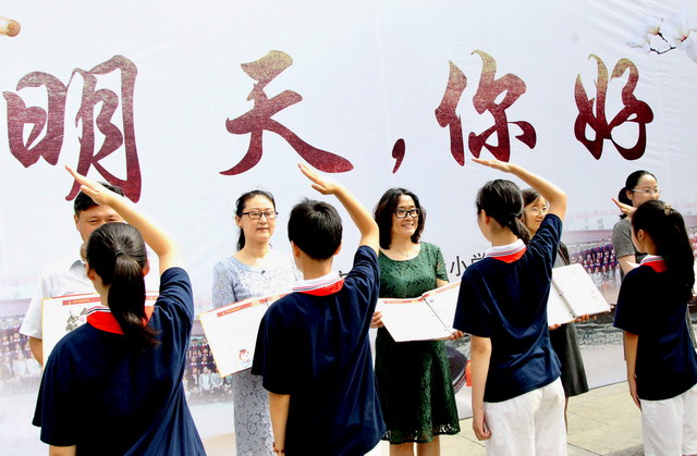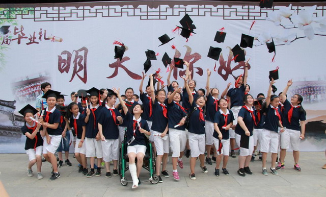 在这即将离别的时刻,孩子们伸出右手,把它放在我们的左胸口,离心脏最近的位置,尽情感受母校的每一个回忆随着心跳流淌在青春懵懂的血液里。毕业班老师为毕业生们戴上毕业帽,在儒家大成殿前留下最美一刻。