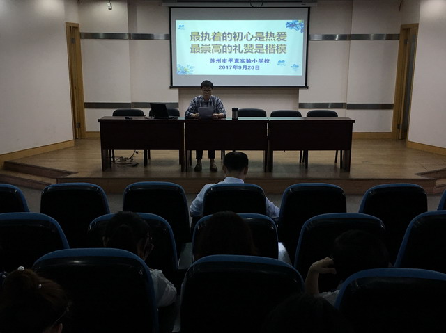 2017年9月20日下午,苏州市平直实验小学校全体教师集中学校报告厅参加师德师风培训,会议由平直辅导区党总支部书记季文学主持。