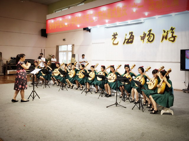 一曲《紫竹调》,恬静、柔和、富有诗意。平直中阮社团的同学们,动情投入的演奏,博得掌声一片。由平直汪敏敏副校长亲自挂帅指导的每周社团训练,孩子们发自内心地喜爱,不迟到,每周的乐曲作业,认真练习。点滴的训练,换来无与伦比的收获。汇演上,孩子们沉浸在美妙的旋律中,享受着艺术带来的欢乐。