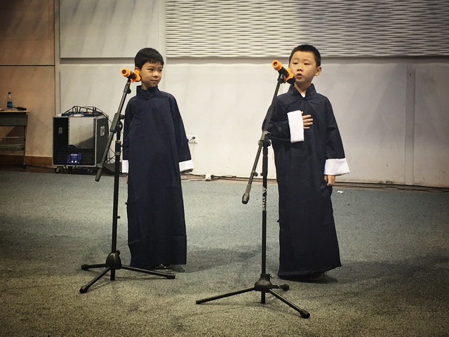 活动中,除了校社团同学们的节目展示之外,每个年级也都推出了自己年级组中的才艺小达人。他们站上舞台,大方地展示着自己的才华。一曲流行歌曲《凉凉》,引来掌声不断。二胡独奏《奔驰在千里草原》,叫好不停。手风琴演奏《我爱你,祖国》、架子鼓表演《逆战》、笛子演奏《塔塔尔族舞曲》、相声表演《吹牛大王》、诵读《明天,我们毕业》……一个个精彩的节目,无不让人陶醉在欢乐的世界中。