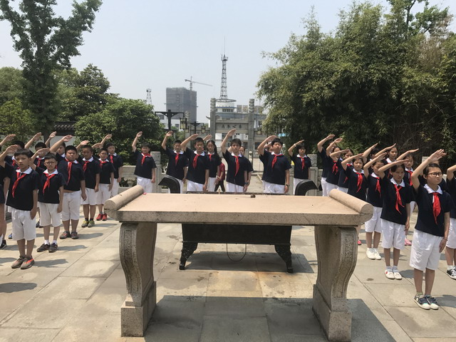 明亮的长廊里五(3)班的孩子们穿着干净整洁的校服排着长队,鲜亮的红领巾在胸前格外耀眼,他们正整装待发前往胥口伍子胥园。今天,他们精神饱满,兴奋之情溢满面容,焕发出少年纯真的光芒,他们已迫不及待在要胥王庙前一览伍夫子的风采!历史的年轮周而复始,静静碾过长长的时光之路。如今的我们,每逢农历初五端午佳节,总要举行各种活动来缅怀这位姑苏城的创建者,让一代又一代孩子徜徉在历史的长河中,不忘初心。孩子们怀着崇敬的心情来到胥王庙前,祭扫伍子胥墓、供奉祭品,用一颗虔诚和敬畏之心凭吊一代忠魂。胥园上空那阵阵深情动人的朗朗诵读之声是孩子们用自己的方式缅怀着先贤。胥王庙前同学们的真挚深情似乎也传染了正在百花洲伍子胥像前悼念的另一群孩子,抬头仰望之间,他们仿佛穿越时光之路,登上万年桥,看到了伍夫子带领人民立城廓、实仓廪、创苏城的睿智之举;远眺胥江水,想到了他屡屡进谏献策,忠于吴国,却沉尸水中的悲怆结局,一股油然而生的肃穆与悲悯之情在孩子心间荡漾开来。
