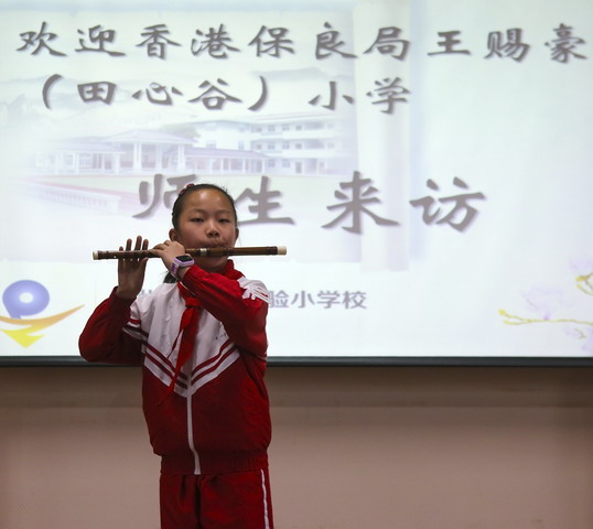2017年4月7日上午十点,平直实验小学的校门口叽叽喳喳,热闹不已。校长徐玉英携我校行政,一同迎接远道而来的香港保良局王赐豪(田心谷)小学访问团。访问团共有学生四十名、带队老师四名,他们一同在平直实小度过了难忘的两小时。