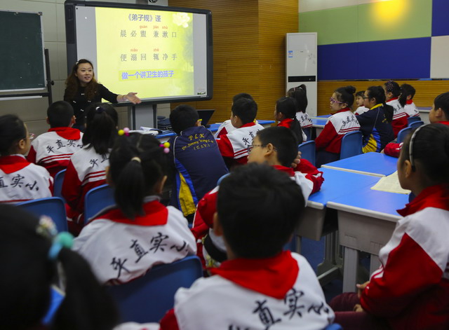 录播教室中,洪薇老师的国学课《弟子规》,古韵今风、无限传递。尽在老师的循循善诱之中,国学的经典魅力,迷住了每一个上课的孩子。传统的经典,怎能不让孩子们大有收获呢?