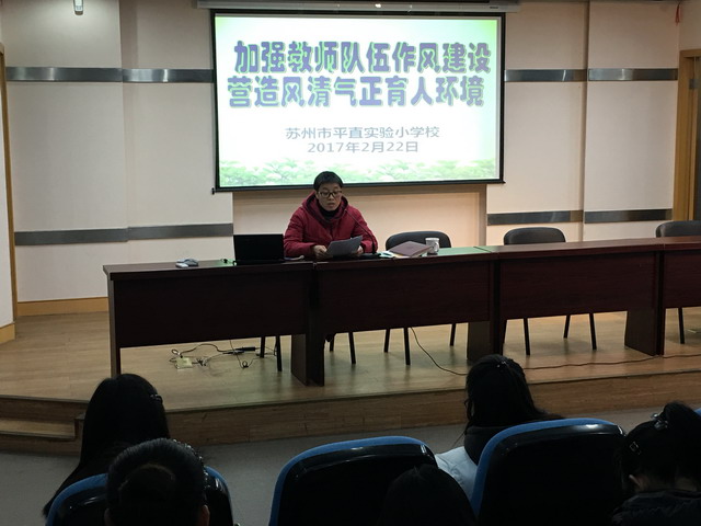 2017年2月22日下午,平直实验小学召开了题为“加强教师队伍作风建设 营造风清气正育人环境”的作风效能建设推进会,会议由平直实小辅导区党总支书记季文学主持,全体教师参加了会议。