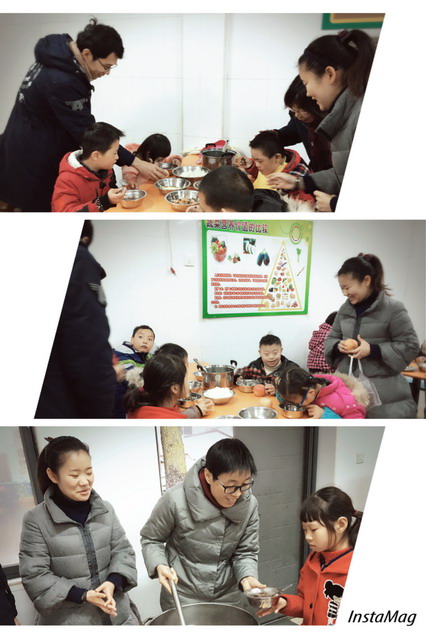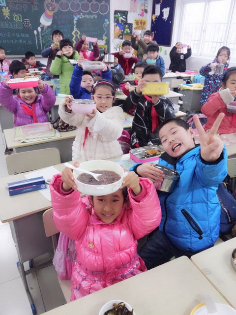 每一年平直的老师们都会把部分腊八粥送到培智学校和敬老院,让更多的孩子和寂寞的老人感受到友爱与关怀。今年的腊八节更比往年丰富,校内孩子们共食甜粥,校外的活动也分线有序展开。季书记领着党团员老师和青年志愿者老师,来到培智学校给那些特殊的孩子送腊八粥,孩子们是多么懂事乖巧,他们吃着香甜的暖粥,灿烂的笑了。汪主席带着工会教师代表及大队委一起前往“苏信女儿家”,给那里的老人送去学校的温暖。今年我校还和蝴蝶妈妈义工服务社、家委会、平直义工妈妈一起带着孩子们到周边小区的残障人士,失独、贫困等生活艰难的家庭送去腊八粥。通过和义工合作,给这样的家庭送以真诚的问候。孩子们很乐意参加这样的送粥活动,我们也给那些平时不太有机会参加集体活动、默默无闻的小朋友一次新的体验,希望通过不同的活动让所有的孩子都能参与其中,有所收获。相信香喷喷的腊八粥能给与他们一份慰藉,孩子们纯真单纯的笑容会给这些老人和家庭带去一丝快乐与温暖。