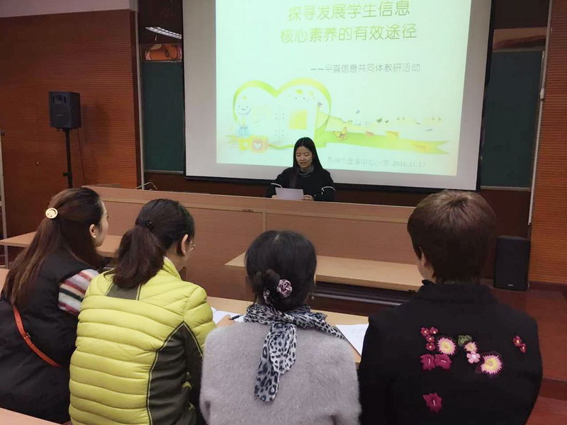 2016年11月17日上午,伴随着淅淅沥沥的小雨,平直教研共同体信息技术教研活动在盘溪中心小学举行。会议由平直实验小学徐老师主持,平直共同体全体信息技术老师参加了此刻活动,盘溪中心小学王敏老师以“浅谈信息技术教学中学生核心素养的培养”为题,为大家做了一次精彩纷呈的讲座。