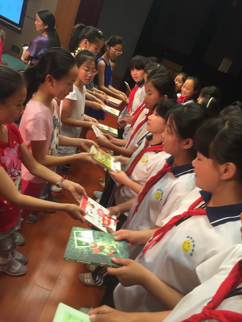 我校玉兰文学社的孩子们,还邀请了吴中香樟小学的同学一同来聆听王老师的讲座。孩子们以书会友,现场将签有王老师寄语的儿童文学著作赠送给香樟小学的同学们,并相约假期过后一同分享阅读心得。通过此次活动,我校搭建起了与民工子弟学校间的互惠阅读,也架起了孩子们之间友谊的桥梁。
