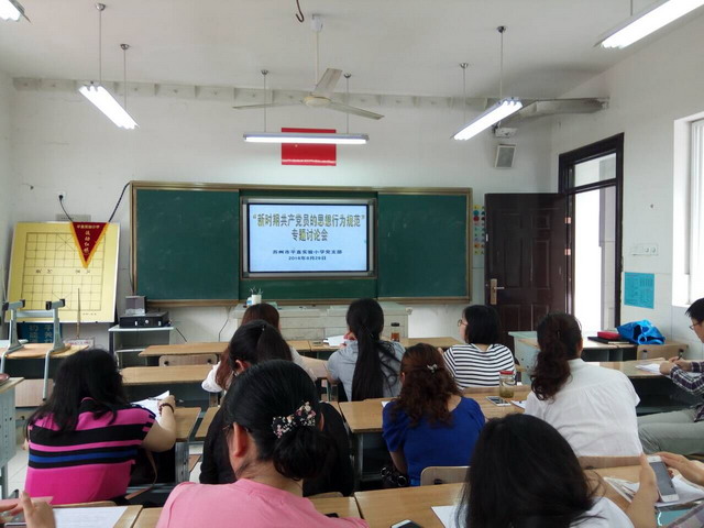 按照姑苏区教体局党委的要求,苏州市平直实验小学党支部于6月29日下午,开展了一次“两学一做”专题讨论会,本次专题讨论的主题是“新时期共产党员的思想行为规范”。会议由辅导区党总支书记季文学主持,全体党员教师参加了此次专题讨论会。