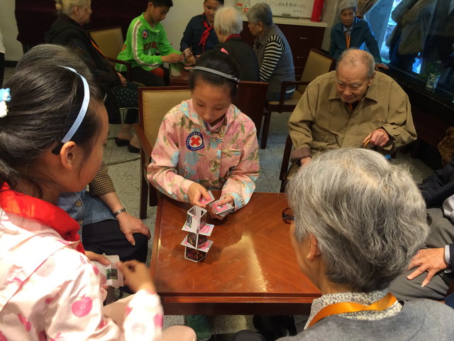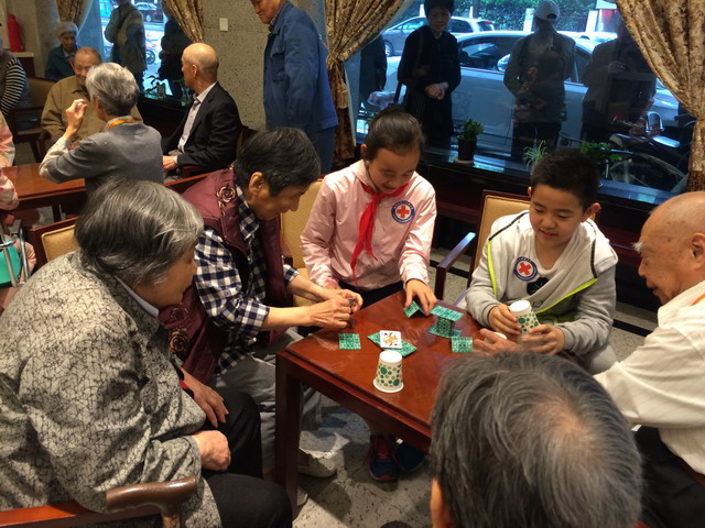 阵阵欢声笑语,不时从苏信女儿家养老院传出来。2016年6月1日,在国际儿童节到来之际,苏州市平直实验小学红十字会的队员们来到他们的老朋友“家”, “40”的老人们和“00”后的孩子们一起过“六一”。