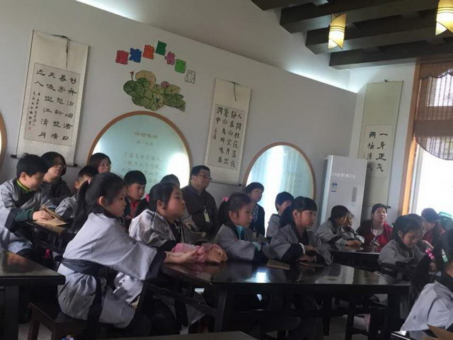 孩子们的变化也不小呀,刚开始时候,大多不会自己穿学堂的制服的小家伙们,全靠爸爸妈妈帮助;现在呢,一个个自己在班级就穿戴整齐,排队来到学堂。行三礼时,原来笨手笨脚现在行起礼来也变得有模有样。更不用说上课认真听讲,高声诵读了。