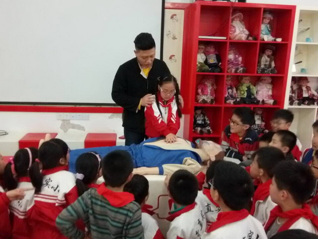 跟着老师走近少年宫,看着“珍爱生命,自助救护”的标语,我心里又兴奋又紧张,毕竟我是第一次接触这种活动啊,很多同学的心情应该是跟我一样的,从他们脸上的表情就可以看出来呢。