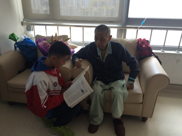 中午十分,会员代表们走进朱锡坤爷爷的病房。爷爷因身体原因住院很长一段时间了,在爷爷住院之前,给学生们送来了10本《大江南北》杂志,鼓励学生多读书,多看报,铭记历史,成为祖国未来的栋梁。