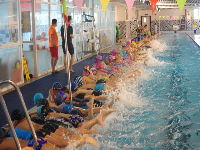 我校是一所百年老校,同时又是江苏省游泳传统项目学校。二十多年来为国家、省、市、区各级体育专业队输送尖子运动员多名。为了加强我校多年以来形成的游泳传统优势,保持学校的办学特色,本学期我校在苏州市民健身中心游泳馆的大力支持下,联合办学,在四、五、六年级开设游泳普及课。上课教练全部由市民健身中心游泳馆聘任有经验、有资质的教练进行教学。“每天锻炼一小时,幸福生活一辈子”。学校对学生体质的重视有着良好传统。希望通过三年的课程教学,使学生掌握一定的游泳技能和技巧,进而磨炼意志,增强体质,受益终生。“打响体育品牌,凝炼特色文化立校”是平直人的不懈追求。这也是我校坚持突出以游泳为龙头,以点带面,带动其他项目运动队(田径、羽毛球、棋类)训练的体系、坚决贯彻“选好苗子,着眼未来,系统训练,积极提高”的原则、认真抓好游泳传统项目教学工作。