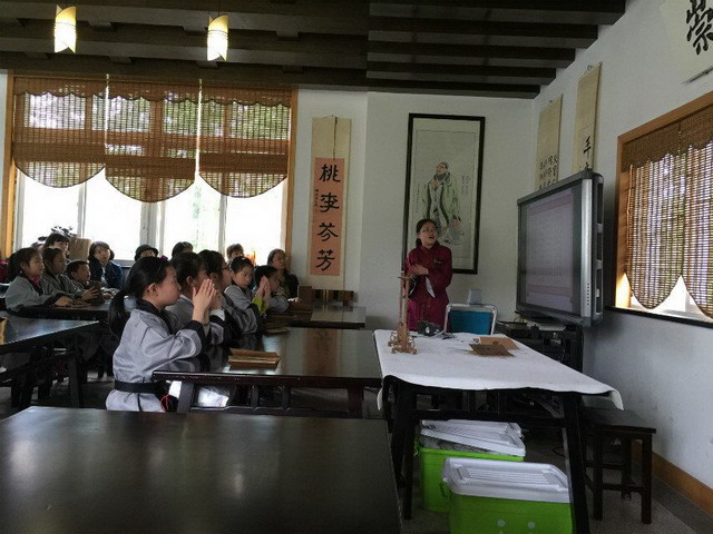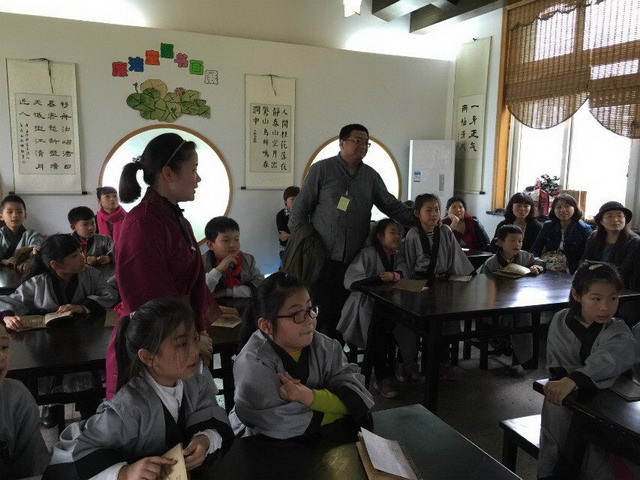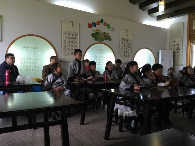 这是一所特别的学堂,墙上高挂着孔子圣像,孩子们穿着汉服,认真的聆听老师的教诲,学习着国学的经典。2016年4月20日,德善书院平直学堂迎来了第三次课程。