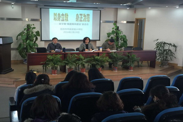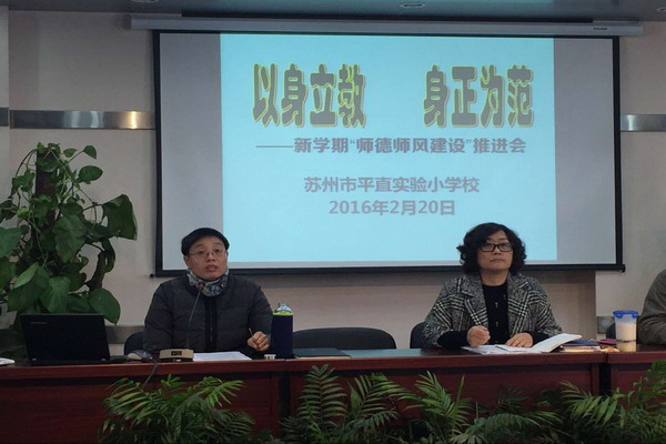 上午9点,苏州市平直实验小学校的全体教师齐聚一堂,参加了本学期第一次“师德师风建设”推进会。老师们精神饱满,会场上其乐融融,平直人经过一个假期的休整,以饱满的精神投入崭新的学期!
