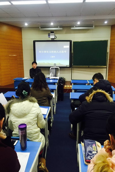 为了进一步深入研究小学语文习作教学的有效性,探索课堂实施的指导策略。2016年2月24日下午,苏州市平直实验小学校请来王喜华老师为学校全体语文老师作《习作教学的几点思考》 专题讲座。
