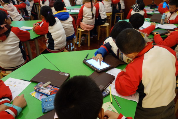 我们平直实小也带去了3堂课。章燕妮老师的数学课用53台ipad完成了《解决问题的策略——替换》数字信息化移动课堂的教学,将苏州和安徽两地学生的课堂反馈进行实时比较,营造出孩子们乐学、追求的气氛。安徽师范大学附属小学郁培林校长高度评价章老师的这堂课,认为这是在信息技术在教学运用中的一个教学模式的改变,一次创新与引领。张婷君老师执教的综合课四年级《笔袋DIY》一课,充分运用实物演示、多媒体等多种教学方式和手段,让学生在这节课上不仅掌握生活小技能,知道笔袋制作的工艺流程,学会画裁剪图、手工缝纫,更为今后的自主学习和积极探索搭建平台,获得了情感体验。杨念文老师执教的语文课《火星——地球的孪生兄弟》充分考虑了五年级学生的学情,以发展学生的语文能力为目标,抓住课文的表达及语言特点,运用多媒体教学手段,向学生展现了一个充满语文味的说明文课堂。