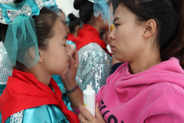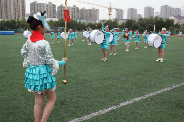 本次活动从9月中旬开始策划准备,学校邀请鼓号队专家为《中国少年先锋队队歌》重新谱曲,分7个声部,其中小号三个声部,打击乐四个声部,整首乐曲经改编后,更加活泼,更富有激情,充分表现出当代姑苏少年的蓬勃精神。同时,打击乐设计新的鼓点,与小号曲完美融合,节奏感更加强烈鲜明,让人耳目一新。队列的变化,也以“满天繁星”到“姑苏教育”之“GSJY”四个字母有序变化,每一名队员都是一颗耀眼姑苏教育希望之星,孩子在行进中抬头挺胸、昂扬振奋,最后化成一只“雏鹰”,展翅高飞、成就梦想。平直鼓号队员们在这一个多月时间里,每天一早来到学校就自觉投入训练,分组练习基本功,每天中午接受专业指导和训练,下午又牺牲了自己的课余时间参加训练。由于学校场地有限,每天只能分组训练,但是没有队员因为任何原因退却放弃的。就这样,这些即将毕业的队员们,兼顾学习,克服重重困难,一直坚持着。有队员腿跟因每一次的带装训练穿高跟鞋而磨破了,但依然坐在场边陪着练;有队员手肌肉拉伤,仅休息几天,又坚持上场了;有队员发着高烧,仍不愿回去,老师心疼了,强行送回家后,家长又亲自开车送回训练场,坚持上场彩排……