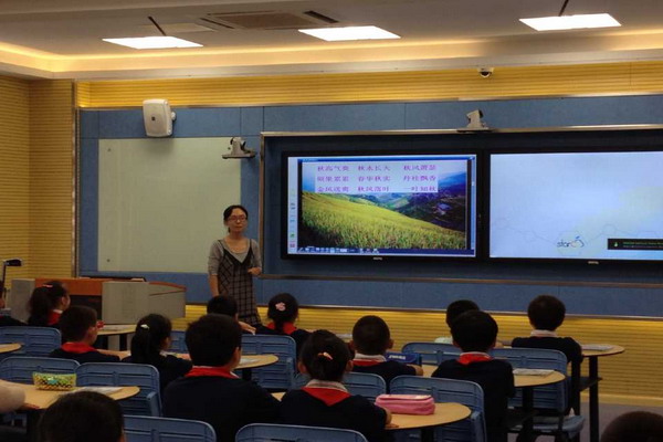 2015年9月14日下午,平直实小进行了本学期的第一次语文校本研训活动,姜芸老师执教二年级上册的《识字3》,冯玉婷老师执教四年级上册的《秋天》。徐玉英校长和我校语文教师一起参加了此次教研活动,并邀请小学语文教学专家王喜华老师指导与点评。