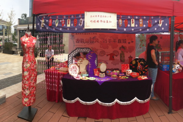 9月25日上午,在工业园区李公堤四期广场上迎来了2015“花季杯”苏州市青少年国粹系列活动,我校今年参展的主题是“古韵盘扣风,巧手平直娃”。 所展作品是我校各个年级学生制作的盘扣手工艺作品。有低年级的衍纸盘扣、中年级的超轻黏土盘扣、高年级使用布料和针线制作盘扣,件件作品汇聚了老师和学生的心血。学生们还将盘扣装饰在包装盒上、民族工艺虎头鞋上、发卡上、喜糖盒上、贺卡上......,让其既是锁扣又作为一种装饰,美观与实用并存。这次由方蓓老师负责的盘扣展示活动不仅使观赏者欣赏到传统盘扣的美,也感受到了时代付与盘扣的创新与变革。受到了评委的好评荣获一等奖的好成绩。