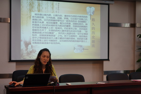 活动中,学校的艺术教学骨干——张宁老师也为大家分享了她在美术教育教学中的智慧,作了关于《绢宫扇传统民俗工艺主题课程》的经验交流,精致的课程设计,巧妙的落实保障,让老师们眼前一亮,由衷佩服张老师对于课程实施的用心钻研,力求完美的精神。