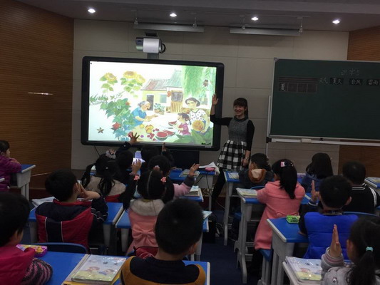 本次教研活动分两个环节。首先由我校吴军老师和姜芸老师分别上了语文研讨课。吴军老师执教的《鲜花和星星》,是一首儿童诗歌,老师不仅通过多媒体课件将孩子们带入了一个鲜花满地,繁星满天的世界,而且指导孩子们通过多种形式来朗读,再现了儿童看鲜花、数星星时的天真烂漫,充满了童趣。课上孩子们兴趣盎然。姜芸老师执教的《识字5》,是一篇采用“词串”形式的识字韵文。韵文围绕“夏天”这个主题,将12个词语按照一定的分类,分别介绍了夏天特有的天气、水果、动物、花儿。教师执教时配上精美的插图又为学生了解夏天特点创设了情境,让学生在识字识词中体验到趣味,使学生的识字识词和认识事物巧妙地结合起来,充满了生活气息和童趣。