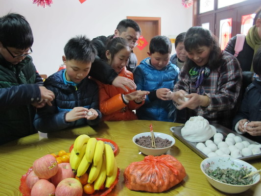 对于苏州的农家人而言,过年制作送灶团子,那可是一桩全家总动员的大事。和面、醒面,新鲜的太湖萝卜刨丝并拌以猪肉、开洋做馅儿,蒸赤豆、炒豆沙,这些工序对于来自城市的孩子们而言,是新鲜的,然而庄稼人却恪守着传统,一一铭记、了然于心。所有的动作都是那样的娴熟、快捷,孩子们看得眼花缭乱,跃跃欲试。隔壁的阿爹甘当生活老师,一招一式,慢慢教来,细细指导,看着小家伙们认认真真和面团较劲的模样,大人们不禁呵呵笑。“中间的窝儿,要一点点地捏,深一点,包的馅儿多,煮好了,一口下去,那才窝心!”老人家们一步一步地指导,孩子们对于这难得的体验也倍加珍惜,定定心心地捏,圆溜溜的是萝卜丝开洋馅儿的咸味团子,两头尖尖的是豆沙馅儿的甜味团子,孩子们耐心地做着,细心地区分着,体验着苏式“慢”生活的那一份笃定与儒雅。