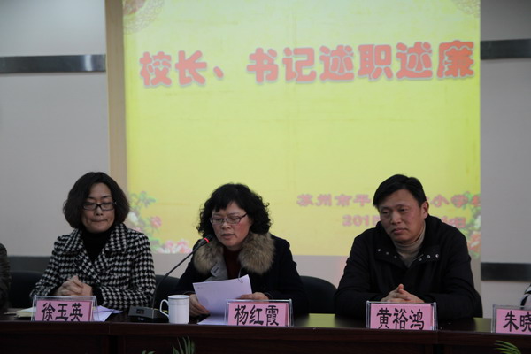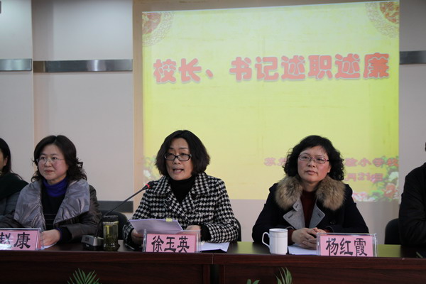 大会第一议程,由徐玉英校长、杨红霞书记先后进行了述职述廉,她们回顾过去的一年,展望即将到来的羊年,充满信心、凝聚力量的话语感染了在场的每一位老师。接着