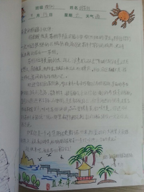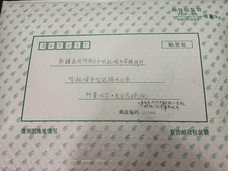年前,学校发动全校少先队员们给哈拉峻乡哈达塔木小学的孩子们写一封介绍自己家乡的信,队员们立刻行动起来。有用精致的图画勾勒出江南水乡的风土人情;有用优美的文字描绘出小桥流水的独有气质;还有用美丽的照片留下苏式民风的淳朴优雅……辅导员老师选取了具有代表性的优秀信件汇编成册,一同寄给新疆克州的小伙伴们。不仅如此,队员们还邀请他们一起参与到学校新春系列活动中来,将“敲门拜大年”活动记录表也一起寄出,请克州的小伙伴们也记录下他们新春的风俗人情,并介绍当地特有的年味。开学初,与我们再次进行书信交流,交流年情年景,交流地域文化。