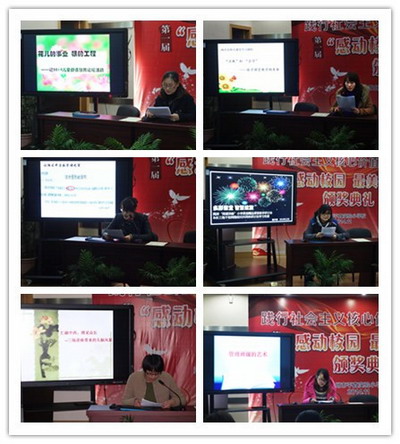 最后,杨迎秋老师给我们带来了她参加全国一线著名班主任教育艺术与班级管理报告会的启发和感受。在此次报告会中,被誉为“中国班主任专业化发展第一人”的陈宇老师毫无保留地分享了他自己24年以来班级管理的方法和心得,非常实用,非常细致。杨老师的讲座让我们深深地感到了班主任工作是一门值得探求的艺术。只有“用无限的相信,点燃无数的自信”,才能让每一个孩子充满希望地飞向自信之旅。