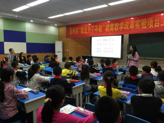 此次参与课堂展示的是我校两位语文教师——五(3)班姚圆静老师与四(5)班张程晓老师,此次参与听课的有姑苏区教师发展中心语文惠兰主任、我校赵康副校长、陆虹教导,以及我校的语文老师。