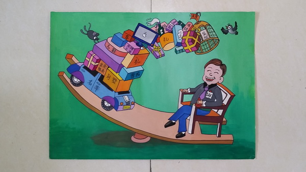 擅长书法绘画的学生还进行了廉洁漫画和书法作品的创作。隽秀的字体无不展示着学生的书法底蕴以及对廉洁的领悟;寓意深刻的画作,描绘出了学生们心中的真善美和假恶丑。