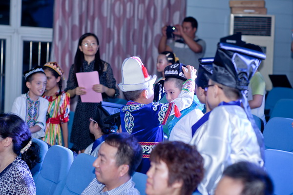 晚会伊始,由苏州市平直实验小学校带来的笛子齐奏《姑苏行》,《塔塔尔族舞曲》,作为开场秀,为晚会拉开了精彩的序幕。紧接着,歌曲《麦西来普纳瓦》是克州昆山育才学校带来的活泼的演绎赢得了观众的阵阵喝彩。随后,集体舞蹈《麦西来普》、歌曲《让爱传出去》、越剧《天上掉下个林妹妹》,孩子们才艺辈出,从容的微笑,无不诠释者他们的手足情深。整个晚会在掌声中,欢呼声中,精彩不断。作为接待方的东道主,平直实验小学的艺术表演可谓百花齐放,从校竹笛传统文化的展示,到绢宫扇吴文化经典展演;从以《竹》为题材的诵读展演,到抑扬顿挫的《读唐诗》合唱,孩子们倾心尽力,将学校的点滴文化习得一一向远方的来客们展现。才干与传承,创意与活力,给现场观众带来了一场精彩绝伦的视听盛会!在热情的舞蹈和美妙的歌声中,平直的学子与新疆来的小伙伴们互赠礼物,一把绢宫扇、一顶小方帽,说不尽道不完的情意,都融在了这小小的礼物中。