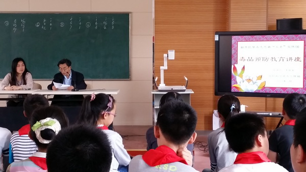 ,双塔街道禁毒工作站为我校六年级学生带来一场毒品预防教育讲座,担任主讲的是姑苏区“五老”禁毒志愿者宣讲团成员李根生老先生。