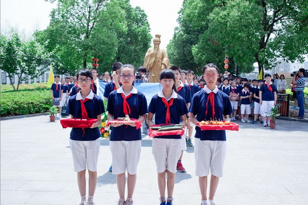 迈着整齐划一的步伐,怀着崇敬景仰的心,苏州市平直实验小学校全体六年级师生,在端午节来临之际,前往胥口镇胥王园,开展“平直实验小学校胥口胥王庙端午祭扫暨‘昭忠节’教育基地揭牌仪式”活动。师生庄严肃穆祭奠姑苏城的营造者——伍子胥,缅怀这一吴国大将。