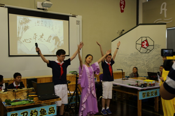 2014年6月3日,平直实验小学师生参加了苏州市凌秋虹名师工作室观摩展示活动。平直是一所百年老校,学校有笛子、诵读、绢宫扇、舞蹈等校本课程,传承着传统文化;同时又是苏州市的一所艺术特色学校,学校的艺术课程丰富,同学们发展全面,因此学校想到将信息与艺术交融,用Scratch编写校园艺术。