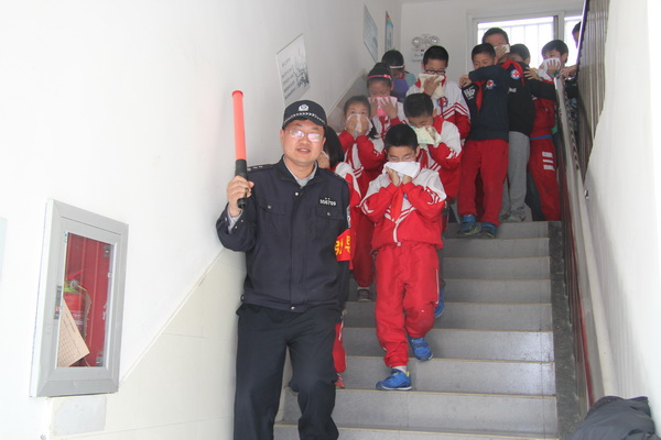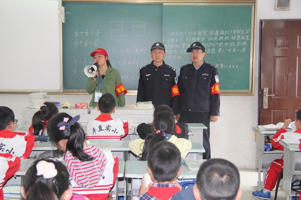 “快、快、快、1……2……3…….”“捂住口鼻,蹲下身子,慢慢向前走.”,一阵阵警报声从教学楼里传出,一个个学生有序地从教学楼中跑出。眼前的一幕并不是发生了什么火灾危险,而是苏州市平直实验小学为迎接、纪念即将到来的“5 ·8世界红十字日”而特别举行的“自护自救,红十字在行动”活动。活动邀请到了养蚕里社区的薛书记来给平直的孩子们进行基本的急救知识培训及危机逃生演习,同时还邀请了姑苏区的红十字会副会长徐中华副会长,社区街道警察,平直实验小学赵康副校长、徐文萍教导一同参与到活动来。