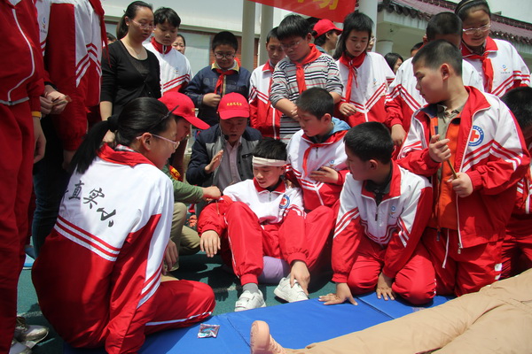 遇警报而不慌张,见伤情而不忙乱,学会自护自救,学会互帮互救,这是当前青少年儿童所必备的安全常识及生存拓展技能。作为苏州市红十字示范校,苏州市平直实验小学每年都会定期举行红十字纪念活动。捐书、捐衣、义卖献爱心、救护运动会……在一次次的宣传、历练和实践中,在一次次的“人道、博爱、奉献”的红会精神鼓舞下,平直的学子不断地成长着,感恩着,体验着成为小小红会志愿者的幸福,生活教育由此启航。