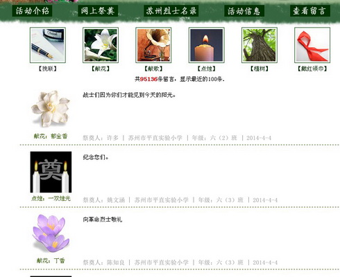 写下祝福,轻点鼠标,不出2秒钟,学生们的一份份祝福,一份份思念就通过虚拟的网络世界传递给了远在天堂的革命先烈们。虽说网络世界是虚幻的,但学生们的祝福却是真诚的。虽不是亲自前往扫墓祭拜,但学生们的心却是铭记着先烈们的英勇,遥寄一份祝福。