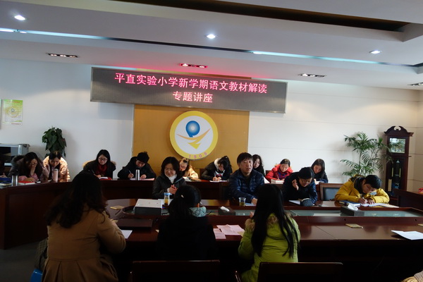 下午,我校全体语文教师齐聚一堂,特邀王喜华老师为我们作部分语文教材的解读与把握。针对语文课本,展开了一场如何“深入挖掘教材文本价值”的新探究。