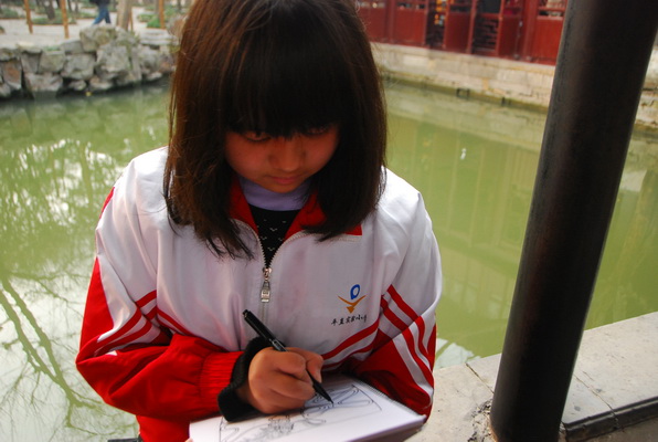 冬日的阳光照耀着苏城,人们怀着欢乐的心情期待着新年的到来。苏州市平直实验小学校的12名学生代表和老师们一行,来到拙政园,逛园林、看花窗、画花窗,了解拙政园的花窗文化,感悟江南园林的古典精巧之美。12名学生分为四组:美术组、摄影组、科学组、小记者,在园林里各自为营,从不同的角度开展自己的各项调查。活动中,美术组的同学们在张老师的带领下,来到花窗边,细细地观察园林中的花窗,用手中的画笔绘出独一无二的吴地花窗。花窗形式各异:有梅兰竹菊的造型,有十二生肖的模样,圆的、方的、扩散状的,聚拢来的……各式各样,眼花缭乱,大家在张老师的一一指点下,发现着、惊叹着、感慨着,在洁白的画纸上,细细地勾勒出花窗的轮廓和图案……与绘画组认真安静的绘画截然不同,科学组的学生们一会爬上亭子测量湿度,一会走进厅堂测试内外温度,一会用设备测试花窗的透光性,并根据自己对花窗提出的疑问,亲自动手,实践调查,找寻答案。接下来科学组的同学还将继续研究花窗的坚固性,各种花纹和形状从科学的角度上观察,具有抗弯曲能力强的作用,能经受住更强的压力。小记者们则和摄影组同学们相互联手,在园林中采访游人,无论老人还是小孩,无论外地人还是本地人,无论中国人还是外国人,都向他们拿出自己设计的调查问卷,简简单单的几个小问题,透出了广大市民及中外游客对苏州园林的独特理解,认认真真的解答中折射着大伙对苏州园林的。小记者们新颖独特的问题,口齿伶俐的问答,让园林中游人们的啧啧称赞。摄影组的同学们则用他们的镜头记录着学生们和游人之间的一举一动,也记录着园林中花窗那特有的美。