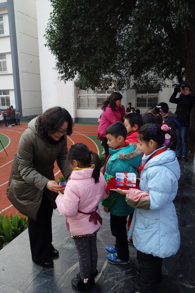 接着,徐校长和杨书记为平直娃们送上消寒卡,各年级代表上台领取。小小的一张消寒卡,每九绘制一格,格满寒消,它成了平直孩子们冬天的好伙伴,陪伴着他们度过一个快乐、充实的冬天。孩子们饱含感情地吟诵起《九九歌》,字正腔圆,整齐划一,操场上处处回荡着他们动听的声音——“一九二九不出手,三九四九冰上走。五九六九,沿河看柳。七九河开,八九燕来。九九加一九,耕牛遍地走。”