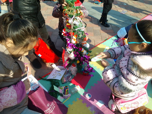 这是一次亲子系列活动,所有报名参赛的孩子,都由一名家长陪同,学生自行组队,四名一组,团结合作,亲自动手扮靓了一棵棵圣诞树。活动中,欢声笑语不断,驱赶了严冬里的丝丝寒意,大家在彼此合作、互帮互助的过程中,体验到了分享的快乐。