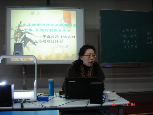 2013年12月25日下午,外面虽是天寒地冻,但苏州市平直实验小学的校内却气氛活跃,热情高涨。平直共同体语文学科组的教研骨干团队齐聚平直实小开展了“以生本理念为指导多视角解读文本 合理研制教学内容——平直共同体语文专题研讨活动”。姑苏区教师发展中心李琴老师、金外潘校长、平直实小的徐校长在百忙中都参加了本次活动。