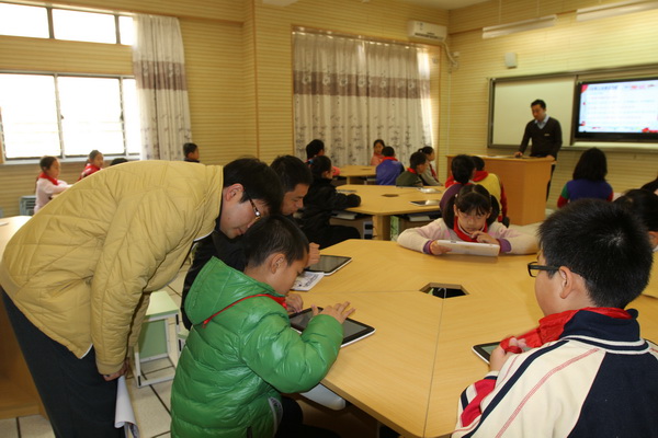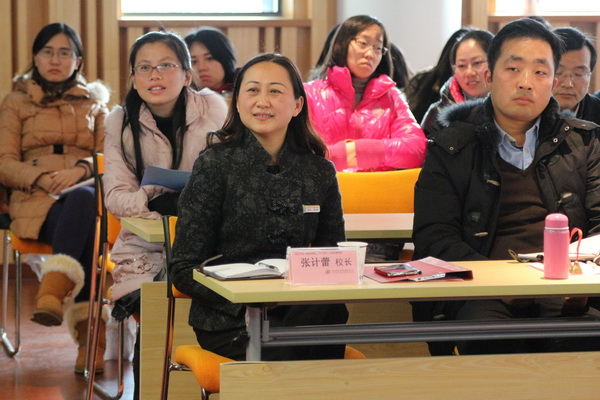 苏州市平直实验小学徐玉英校长向大家汇报了组长校一年来的工作情况,并对下一轮的组长校——杭州采荷一小的下阶段工作设想提出了宝贵的建议。徐玉英校长希望四校能针对各自的发展瓶颈找到新教育的途径,在新媒体支撑下进行更多的教学探讨。