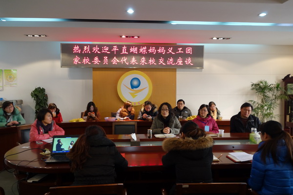 2013年12月20日,在平直实验小学校会议室里召开了“平直蝴蝶妈妈义工团”座谈会。出席此次活动的有徐校长、杨书记、黄校长、平直蝴蝶妈妈义工团代表、平直家校委员会代表、青年团员教师。大家齐聚一堂,相互交流,畅所欲言。