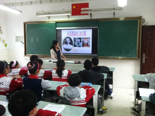 六(5)班的“与名家对话”展示课和鲁迅先生来了个穿越时空的对话,在鲁迅先生笔下的百草园和三味书屋中,孩子们感悟到了即便是大作家也有着欢乐的童年。大伙儿或读或悟,或感或写,在大家的散文中寻找童真。在评课活动中,王老师肯定了这一大胆的尝试,但就“对话”二字的具体落实,还与老师们进行了一次深入的探讨,这为丰富学生的文学素养教学提供了一笔丰厚的资源。